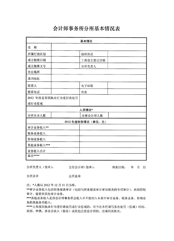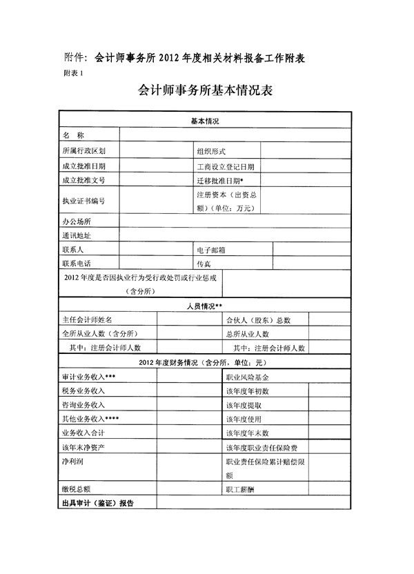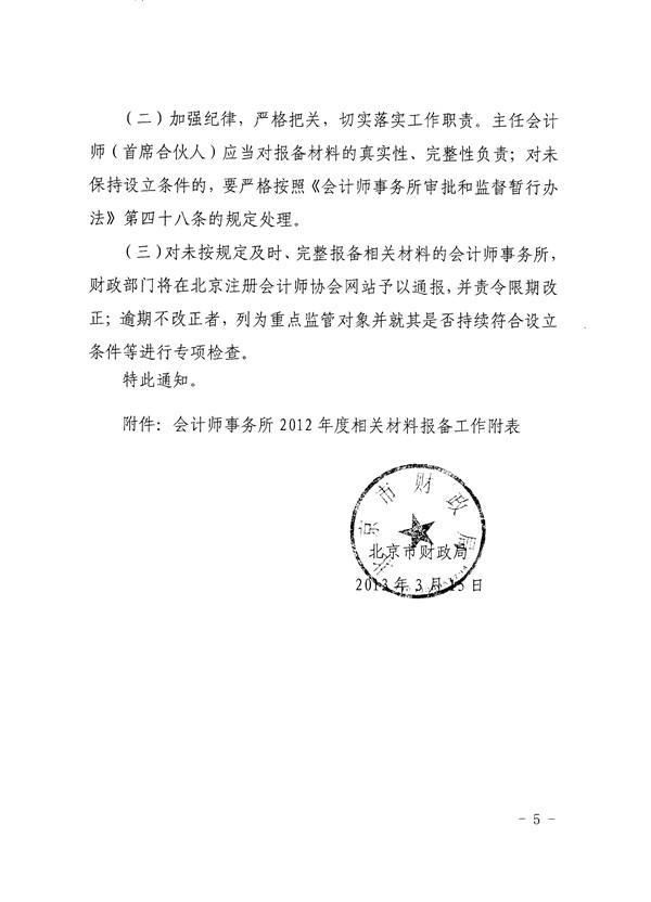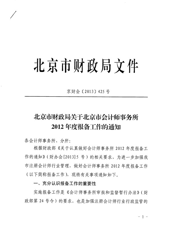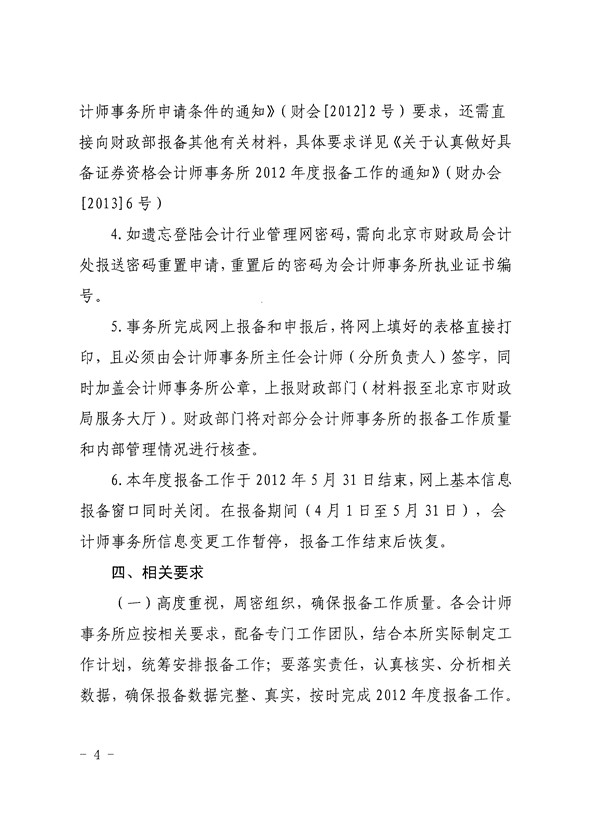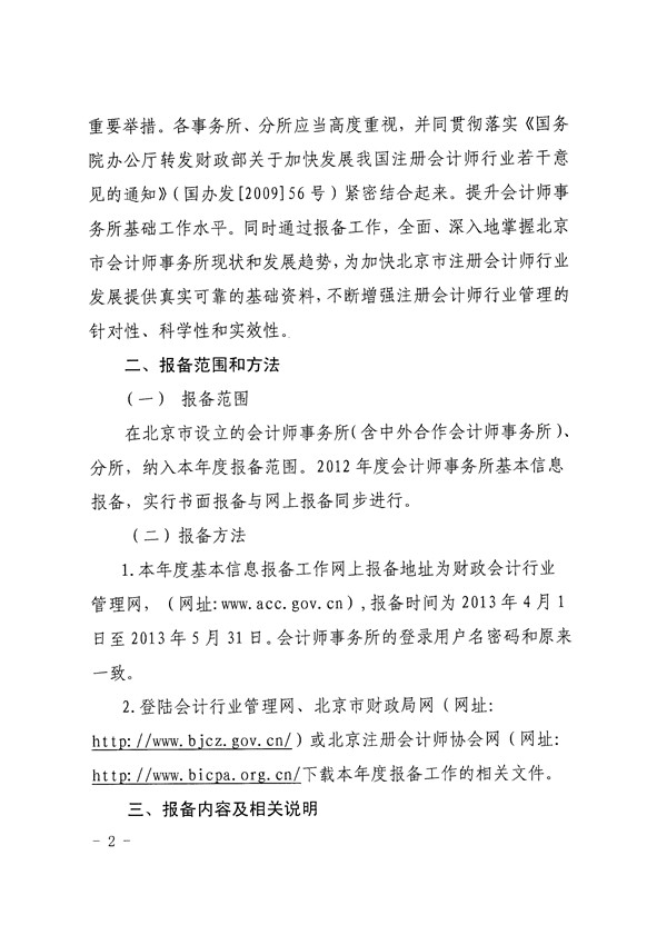 北京市財政局關于北京市會計師事務所2012年度報備工作的通知