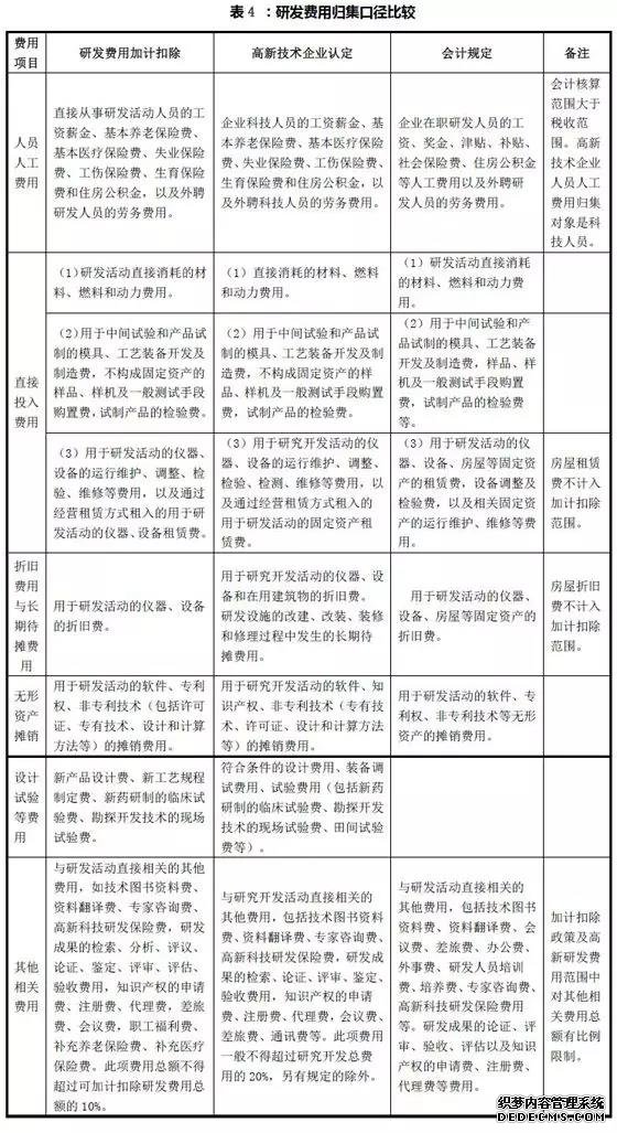 三個研(yan)發費用歸集口徑相比較,存在一定差(cha)(cha)異(yi)(見表(biao)4)。形成差(cha)(cha)異(yi)的主(zhu)要原(yuan)因如(ru)下: