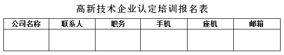 為(wei)使企業能夠準確理解認(ren)(ren)定政(zheng)策信(xin)息(xi),海淀園將組織(zhi)認(ren)(ren)定培訓會,請擬申報高(gao)新認(ren)(ren)定的企業填寫如下(xia)信(xin)息(xi)發送至 gaoqixie-05@vip.163.com確(que)認報名(ming),培(pei)訓時間和地(di)點將在召開(kai)前(qian)以郵件(jian)形式(shi)發送至報名(ming)郵箱。